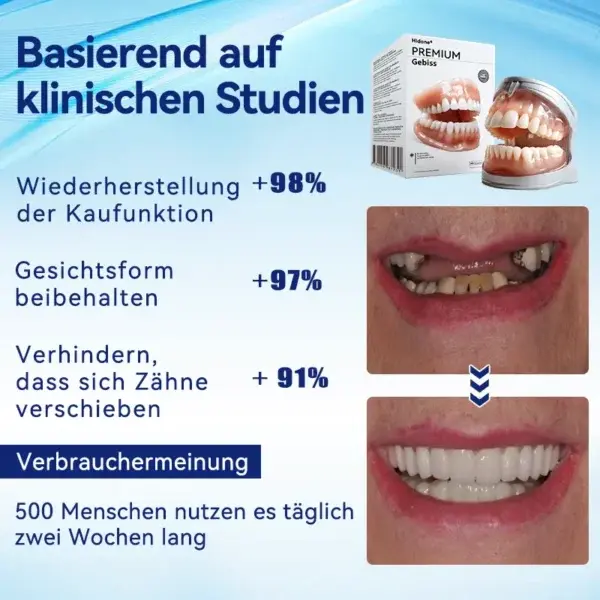 𝐇𝐢𝐝𝐨𝐧𝐞® – 𝐏𝐫𝐞𝐦𝐢𝐮𝐦 𝐆𝐞𝐛𝐢𝐬𝐬 ist eine bequeme und natürlich aussehende Zahnprothese, die sich perfekt an den Mund anpasst und dir dein Lächeln, dein Selbstvertrauen und das angenehme Kauen zurückgibt.