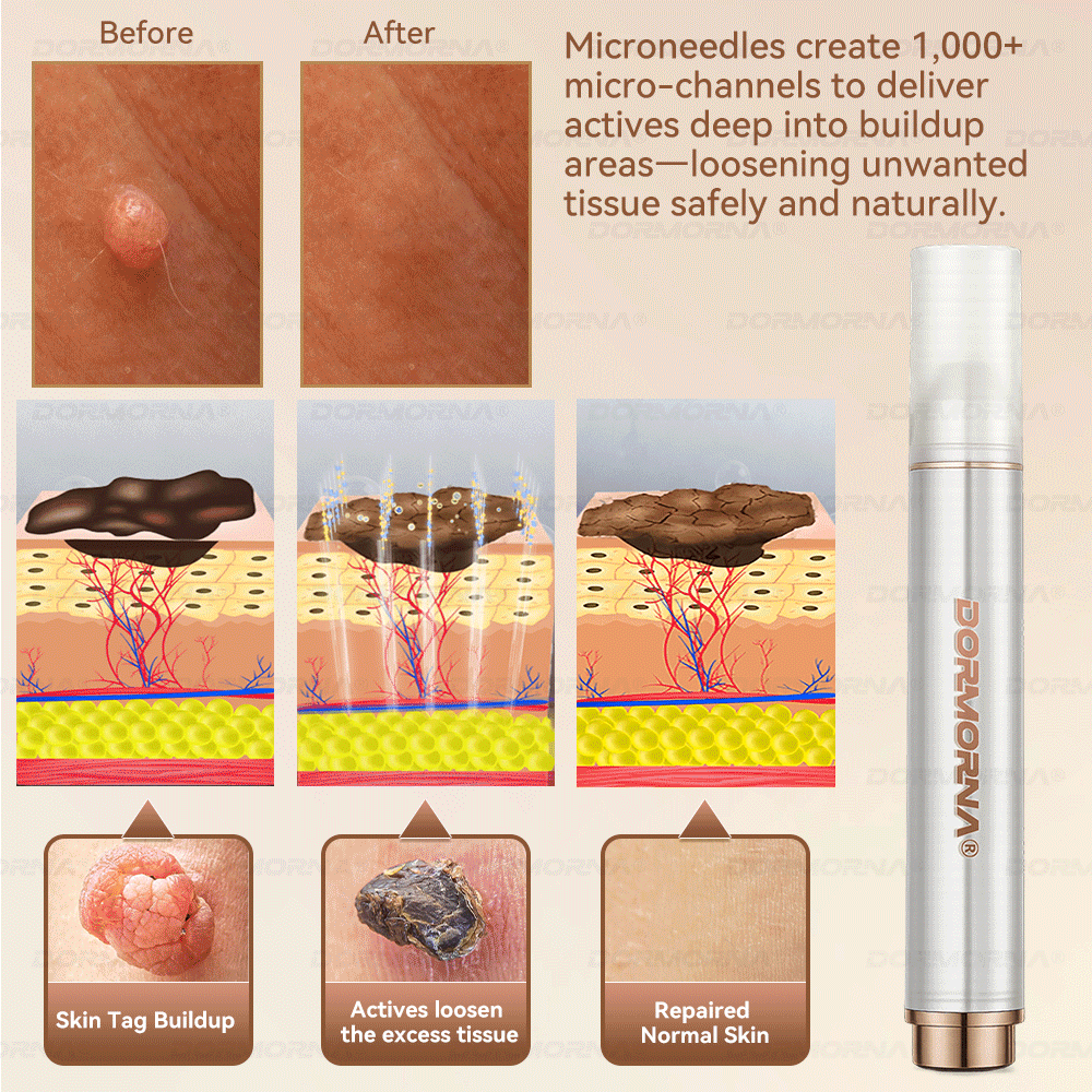 Ultra-fine spicules penetrate the stratum corneum and create micro-channels that deliver active ingredients directly to the site of moles, warts, skin tags, DPN, seborrheic keratosis, and age-spotโlike plaques. This helps loosen overgrown tissue from the root, causing it to gradually dry, harden, and enter a natural shedding phase.