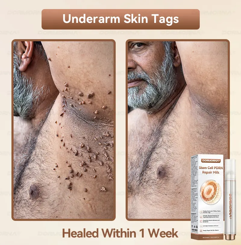 Then I started using DORMORNAยฎ Stem Cell PDRN Repair Milk. Its texture is gentle and non-irritating. I apply it three times daily to the most prominent areas, massaging it in lightly until absorbed. After consistent use, I noticed the surface skin softeningโno longer tight and rough like before. The raised areas began feeling smoother to the touch, the dullness gradually faded, and the overall appearance became much cleaner.