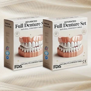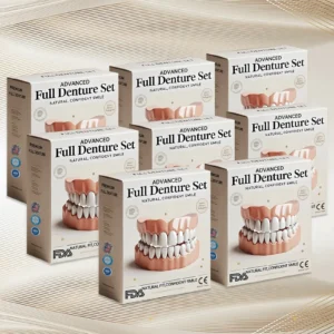 Instant Perfect Smile: Transform your smile instantly with the . Experience the satisfaction of achieving a flawless. customized fit right away. Our innovative denture set eliminates the discomfort of poorly fitting dentures. offering you a snug and natural feel that makes your dentures feel like a true part of your mouth. Say goodbye to sore spots and irritation as Denture Set provides immediate relief. allowing you to enjoy your smile with newfound confidence and comfort. Enjoy a seamless transition to a better-fitting. more comfortable denture experience without delay.