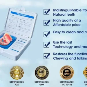 Welcome to NESLEMY™, where cutting-edge dental innovation meets affordability. Our product offers you high-quality dentures that look and feel just like the real thing—without the hefty price tag. Transform your smile and regain your confidence with our easy-to-use, professional-grade denture set designed for all mouth shapes.
