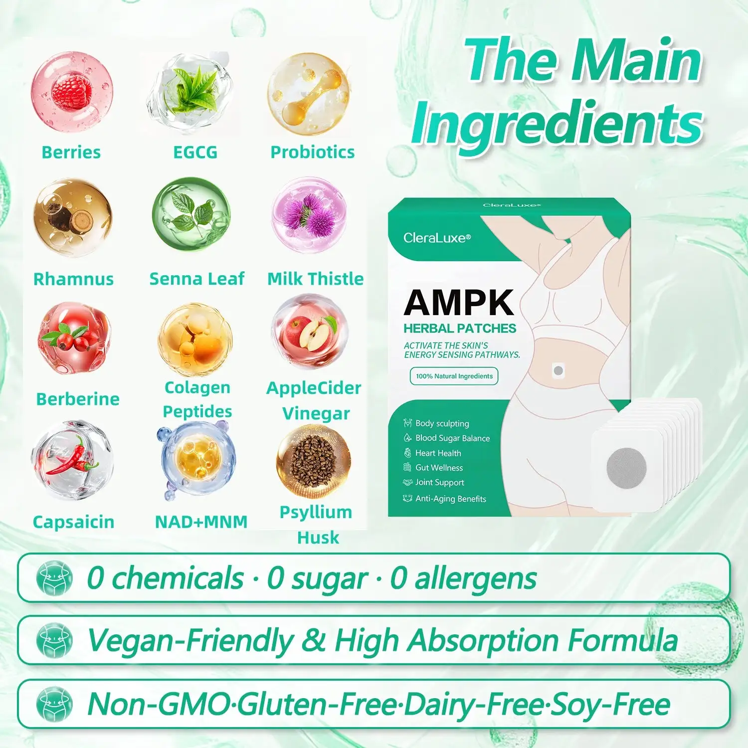 CleraLuxe® AMPK metabolic activation patches are more popular because they are digested and absorbed more quickly, resulting in higher nutrient absorption rates.