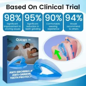 The QIAWI™ Anti-Snoring & Anti-Grinding Teeth Protector is a comfortable, easy-to-use mouthguard that helps stop snoring and prevents teeth grinding by keeping your airway open and your jaw in a stable position while you sleep.