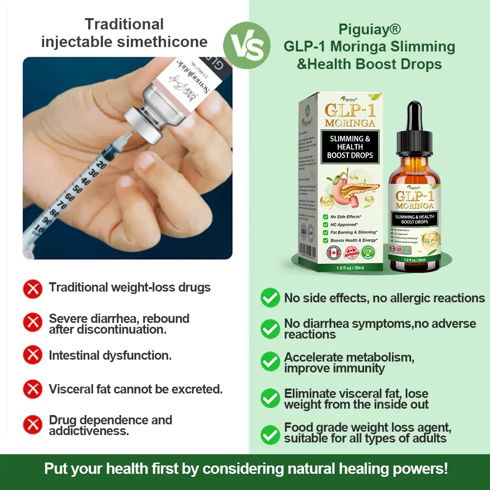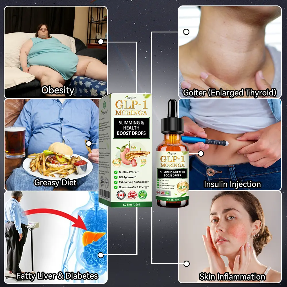 Piguiay® GLP-1 Slimming & Health Boost Drops is a breakthrough natural fat-burning formula developed by The Obesity Society of Canada. This product uses GLP-1 (Meglutide) and Moringa, along with other powerful ingredients, to help you lose weight, suppress appetite, regulate blood sugar, and boost overall health—without strict dieting or intense workouts.