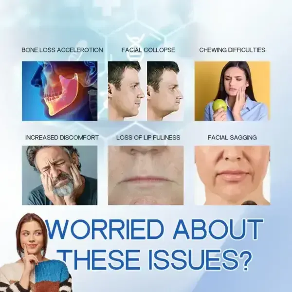 - Facial Collapse – Loss of bone support leads to a sunken, aged appearance.