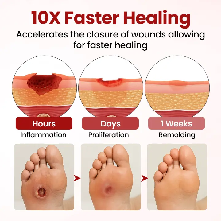 Whether treating stubborn ulcers, persistent dryness, or daily protection, our advanced formula accelerates tissue regeneration by 300%, cuts healing time in half, and dramatically reduces infection risk – all while maintaining optimal pH balance for healthy skin function.