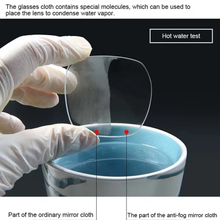 Keeps glasses fog-free: A simple dab of this anti-fog cloth on your glasses makes them fog-proof. Hot water test: The effectiveness of the fabric is proven by performing a hot water test, in which the fabric is validated if there is no condensation after rubbing the sample glass.
