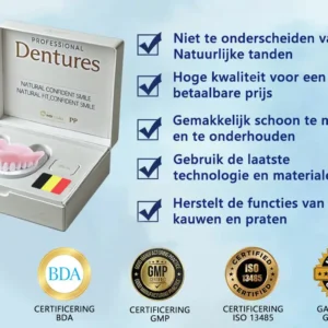 “Aanpasbare klikprotheses en zuigprotheses die écht aanvoelen als uw eigen tanden.”
