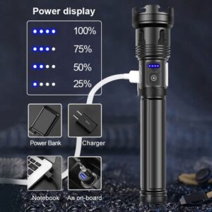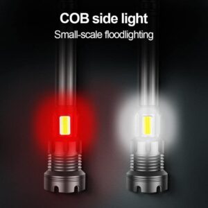 High Lumen Tactical Flashlight is one of the brightest flashlights on the market. It gives you a much wider field of view and brightness than other flashlights. Durable military grade alloy body built for tough use. It is IP-X6 rated waterproof and specially designed for use in heavy rain, snow and extreme conditions. Made of aluminum alloy, anti-pressure and anti-fall, multi-layer metal heat dissipation, wear-resistant anodizing.
