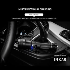 • USB Rechargeable – Can be charged from anywhere: plug socket, computer or power bank( High Lumen Tactical Flashlight)