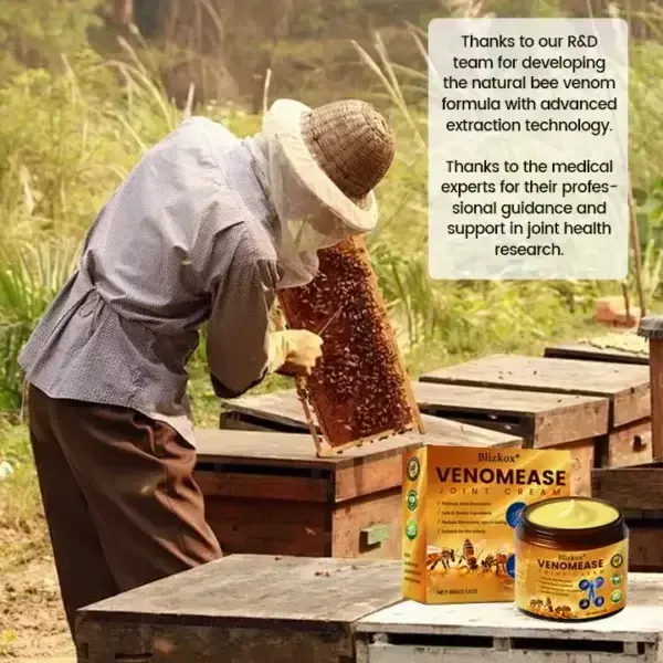 Blizkox® VenomEase Joint Cream is a revolutionary natural joint pain relief cream, clinically formulated with purified bee venom and other proven ingredients to: