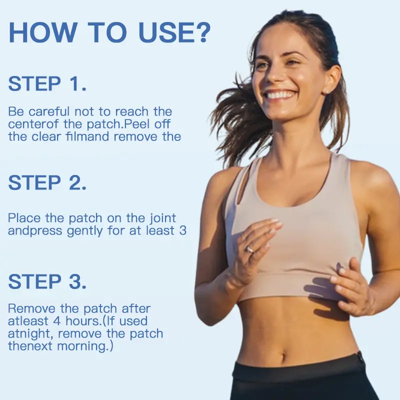 Nano-microneedle joint patch is a multifunctional treatment solution that combines natural ingredients with plant ingredients. It mainly treats arthritis by reducing joint inflammation, relieving pain and swelling, and promoting the repair and regeneration of bone tissue. In the treatment of osteoarthritis (OA) and joint pain, it replenishes joint fluid, lubricates joints, relieves pain, reduces inflammatory responses, and promotes cartilage repair. In addition, nano-microneedle joint patch accelerates injury repair by stimulating chondrocyte proliferation and collagen synthesis, and is suitable for sports injuries or postoperative rehabilitation. Therefore, it has shown significant efficacy in osteoarthritis, gouty arthritis, and rheumatoid arthritis, making it an important treatment option for arthritis and bone-related diseases.