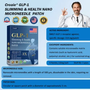 The Nano Microneedle Patch containsย ๐ก๐๐๐๐-๐ง๐ถ๐ฟ๐๐ฒ๐ฝ๐ฎ๐๐ถ๐ฑ๐ฒย in each patch. It works by mimicking the action of Glucagon-like Peptide-1ย (๐ง๐ถ๐ฟ๐๐ฒ๐ฝ๐ฎ๐๐ถ๐ฑ๐ฒ). promoting insulin secretion. inhibiting glucagon secretion. and delaying gastric emptying. which helps control blood sugar levels and aids in weight loss.
