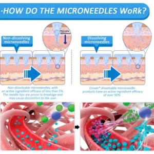 Each needle isย 0.27mmย long. justย 1/7th the thickness of a hair. and is made fromย dissolvable medication. These micro-needles are precision-engineered using cutting-edge manufacturing techniques to ensure a seamless. pain-free experience while effectively delivering the active ingredients directly into the skin.