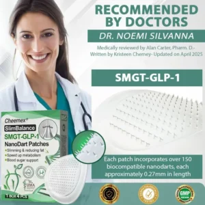Introducing the Cheemex® SlimBalance SMGT-GLP-1 NanoDart Patches, presented by Dr. Noemi Silvanna on February 3, 2025, featuring advanced Sustained Micro-Gradient Technology (SMGT) for targeted metabolic support.