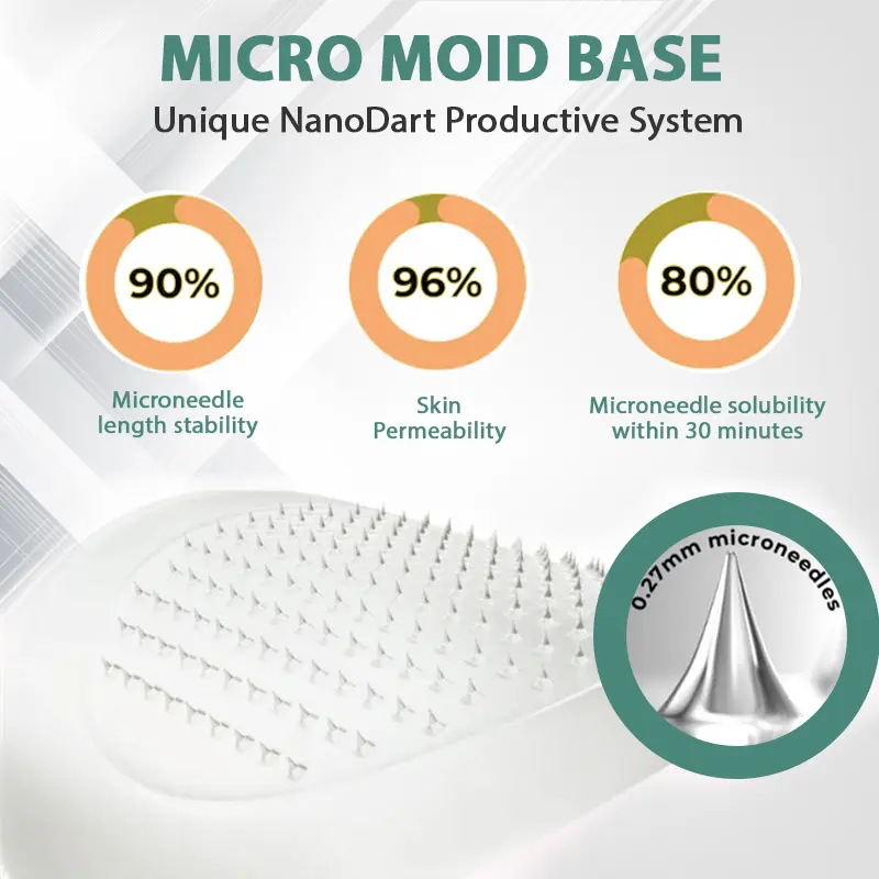 Each patch contains over 150 dissolvable nanodarts, just 0.27mm thin, designed to painlessly penetrate the skin and deliver concentrated GLP-1 serum deep beneath the surface. Once applied to clean, dry skin, the nanodarts dissolve rapidly, releasing a controlled flow of compounds that regulate appetite, support metabolism, and stabilize blood sugar levels throughout the day.