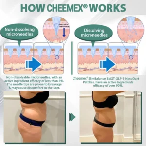 According to The National Institute of Diabetes and Digestive and Kidney Diseases (NIDDK), the Cheemex® SlimBalance SMGT-GLP-1 NanoDart Patches represent a novel advancement in metabolic regulation and weight management. Utilizing GLP-1 peptides, these patches facilitate appetite modulation and enhance metabolic efficiency. Their sophisticated nano-delivery system ensures precise transdermal administration, offering a cutting-edge alternative to conventional therapeutic methods.