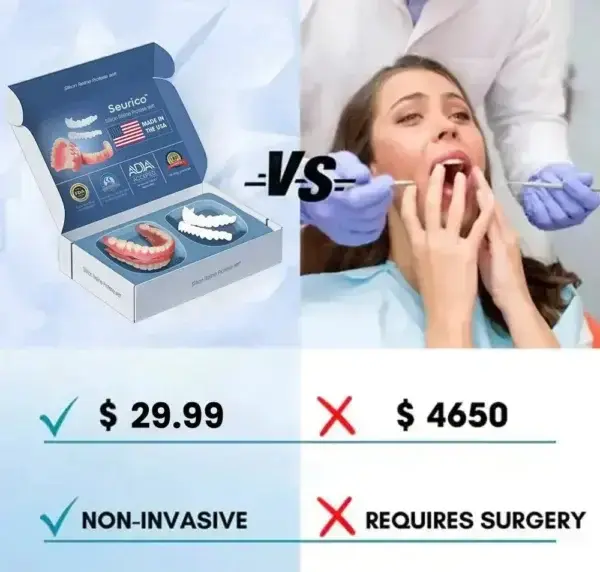 The Seurico™ 2-Piece Denture Kit provides an exceptional alternative to traditional dental implants, offering convenience and affordability.