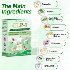 Meglutide, combined withย apple cider vinegar and Moringa extract, promotes fat burning by improving insulin sensitivity and helping the body use fat for energy. Apple cider vinegar helps stabilize blood sugar, preventing fat storage.