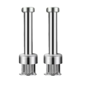These 304 Stainless steel needles break down meat fibers/connective tissues and make marinade absorb better and faster, cook more evenly, and also hasten the cooking time.