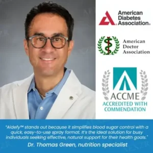 Top endocrinologists and nutritionists worldwide recommend Aidefy™ as a breakthrough product for blood sugar management. Dr. Thomas Green, a leading nutrition specialist, praises the spray for its unique combination of Gymnema Sylvestre, Berberine, and Green Tea Extract, all of which work synergistically to stabilize glucose levels.