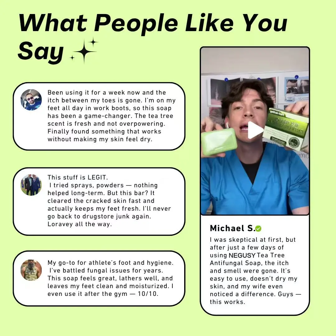 Unlike temporary solutions, NEGUSY™ Tea Tree Soap fights athlete’s foot from the inside out — targeting the root of the infection where creams can’t reach.