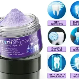 Vioralifes™ Teeth Restoration Mineral Powder eliminates 99.99% of bacteria, resolves bad breath, removes plaque and tartar, treats gingivitis and periodontitis, relieves toothache, prevents and treats cavities, restores tooth enamel, stimulates reparative dentin formation, and supports the regeneration of lost teeth.