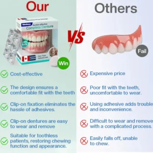 🌟 Affordable and Exceptional Quality: Achieve the Perfect Smile Without the Big Budget.Medazy® offers an affordable solution that delivers exceptional quality and results. Our innovative denture products ensure you get the smile you’ve always dreamed of while keeping costs manageable. Medazy® provides an affordable alternative to dental procedures, allowing you to enjoy professional-grade results without sacrificing quality. For just a fraction of the cost, you can have a beautiful, confident smile and experience the perfect combination of affordability and excellence.